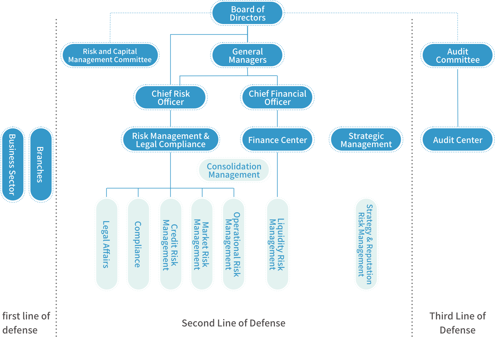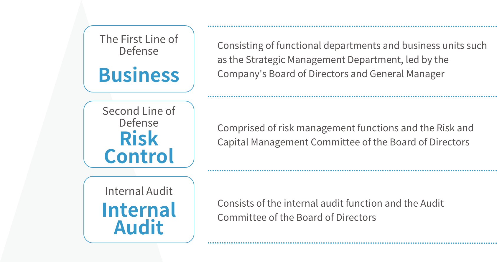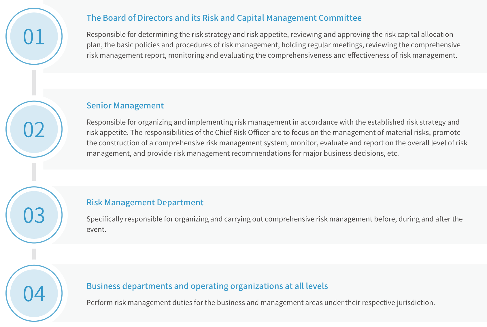 Adhering to the risk management philosophy of “comprehensive risk management and prudence create values”, the Company takes risk management as one of the core contents of its operation and business activities, and has established a set of effective comprehensive risk management systems covering risk system, organization, system, indicators, personnel and culture. We have also actively constructed a risk management system for new businesses to support the development of innovative businesses.
